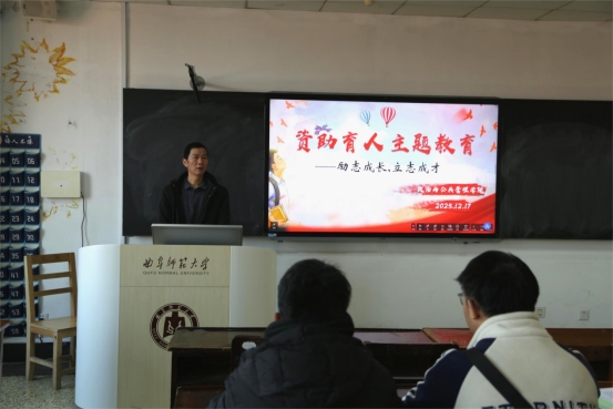 本次会议以“励志成长,立志成才”为主题。会上,王元如围绕国家及学校资助政策体系展开系统解读,详细阐明奖学金、助学金、助学贷款等资助项目的申请条件与办理流程,着重强调资助资金专款专用的纪律要求,叮嘱受助学生恪守诚实守信准则,践行勤俭节约风尚,严守校规校纪与法律法规。同时,王元如结合励志典型案例开展专题教育,鼓励同学们将经济帮扶转化为奋进动力,在学业上深耕细作、精益求精,做好科学职业规划,以自立自强的姿态逐梦前行,用实际行动诠释感恩之心、回报社会。