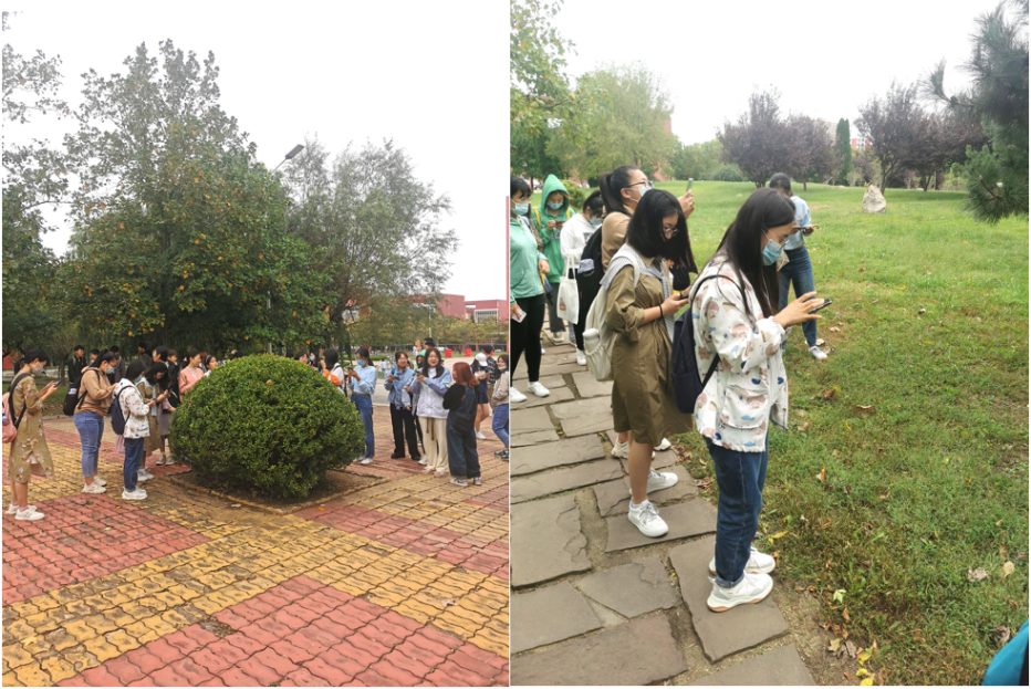 本次活动是本学期《博物学文化与实践》课程的实践环节。这门课程是哲学专业的拓展课程《自然科学概论》和核心课程《科学技术哲学》的先行课程,在开展本次实践活动之前,同学们已经在课程中学习并了解了中西方博物学文化传统,学会了使用“百度AI体验中心”手机小程序(图1)进行植物识别,并学习了植物科学画的绘画技巧,完成了“拍植物”、“认植物”、“画植物”(图2-3),以及“校园识花草”实践环节(图4)。