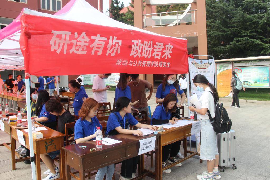 2019级、2020级研究生以良好的精神面貌,细心热情地为2021级研究生新生提供接待指引、资格审查、资料收发、宿舍安排等全方位的服务,为新生解答疑惑,帮助新生搬运行李、减轻负担,并落实学校疫情防控相关要求,新生报到现场井然有序。