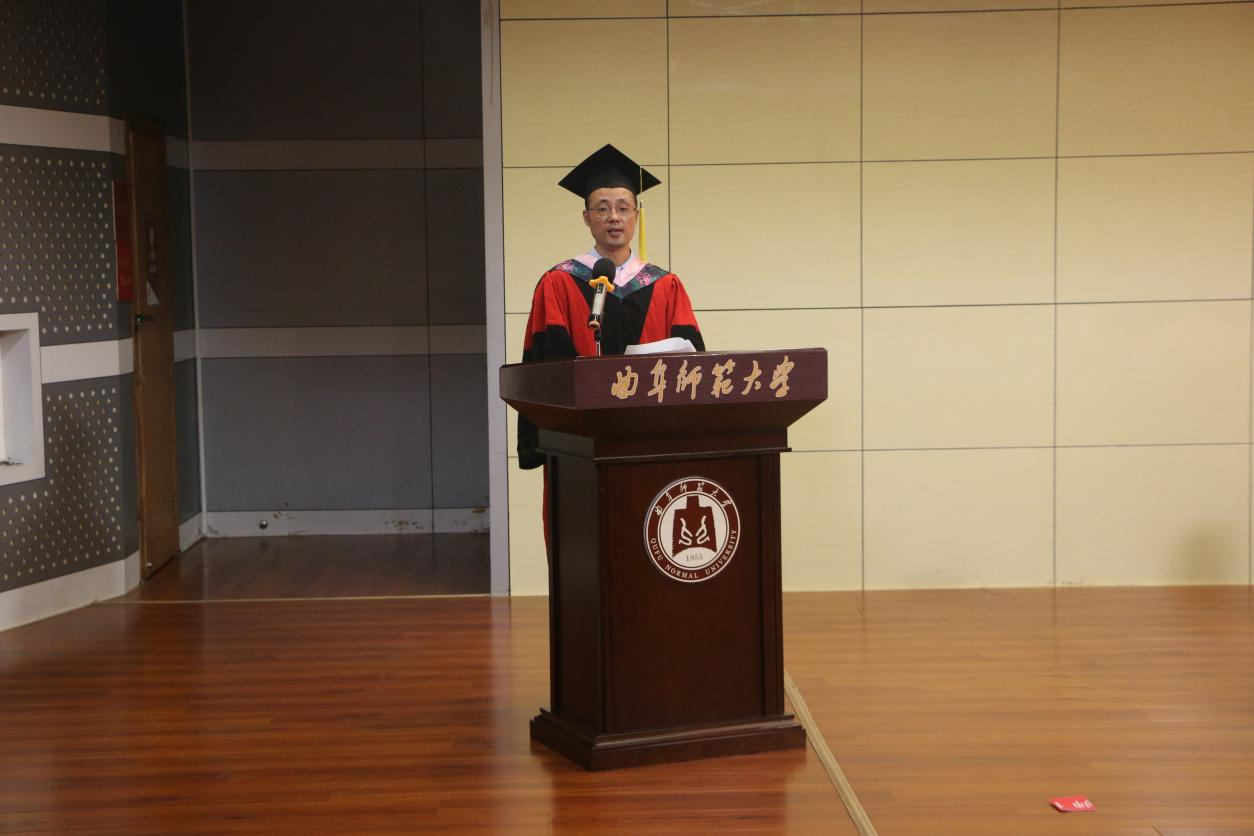 副院长李增元表示,毕业生们见证了曲阜师范大学和马克思主义学部快速发展的步伐,是学部近年来发展成果的见证者、参与者和共享者。学部的发展离不开全体教职工的奋斗与拼搏,也离不开学生的努力和家长的支持。同时,他向毕业生们提出了三点期望:希望大家忠于祖国、忠于人民,“以青春之我造就青春之国家”;希望大家崇尚真理、崇尚光明,将求真求实作为一生的追求;希望大家敢于创新、敢于变革,在新时代新征程上勇立新功。“无论大家走多远、走到哪里,曲园和马克思主义学部将是同学们永远的家园。”