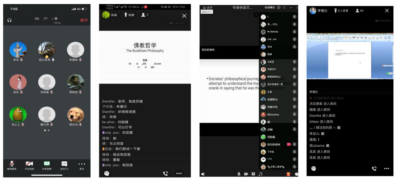 教师按照正常的教学计划分别为不同专业研究生开展了《马克思主义哲学经典著作研究》、《西方伦理思想史》、《中国哲学经典著作选读》、《专业外语文献精读》、《儒学哲学研究》等课程的线上教学,通过课前预习、课程教学过程中课件的实时分享以及课堂讨论交流等方式,使线上教学高效且生动。老师和同学们纷纷表示网络教学的实际情况是理想的,保证了教学活动的正常进行。在课堂中,老师们的努力付出和精彩讲解也深深感染着屏幕前每一位同学,同学们也秉持着认真的学习态度,遵守网络课堂秩序,师生之间积极互动,展现出51视频