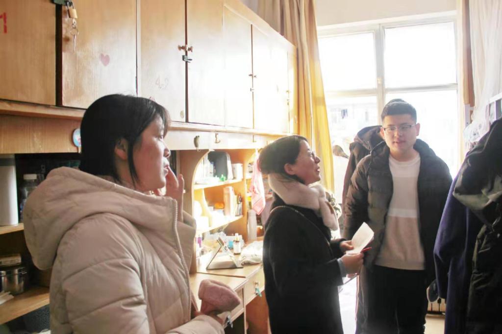 17级、18级、19级研究生宿舍的安全卫生状况和内部设施。走访检查过程中,老师们与研究生同学亲切交谈,仔细询问每位研究生的学习、科研和生活状况。通过检查发现,学院研究生宿舍整体情况良好,宿舍整洁,物品摆放有序,但也有个别宿舍物品摆放杂乱,存在卫生死角,宿舍内通风不佳等现象。针对宿舍安全卫生问题,葛老师和徐老师特别叮嘱大家要提高安全防范意识,注意冬季用电安全,不要使用大功率违规电器,出门时要做到人走断电,宿舍要勤打扫、多通风,养成良好的卫生习惯。