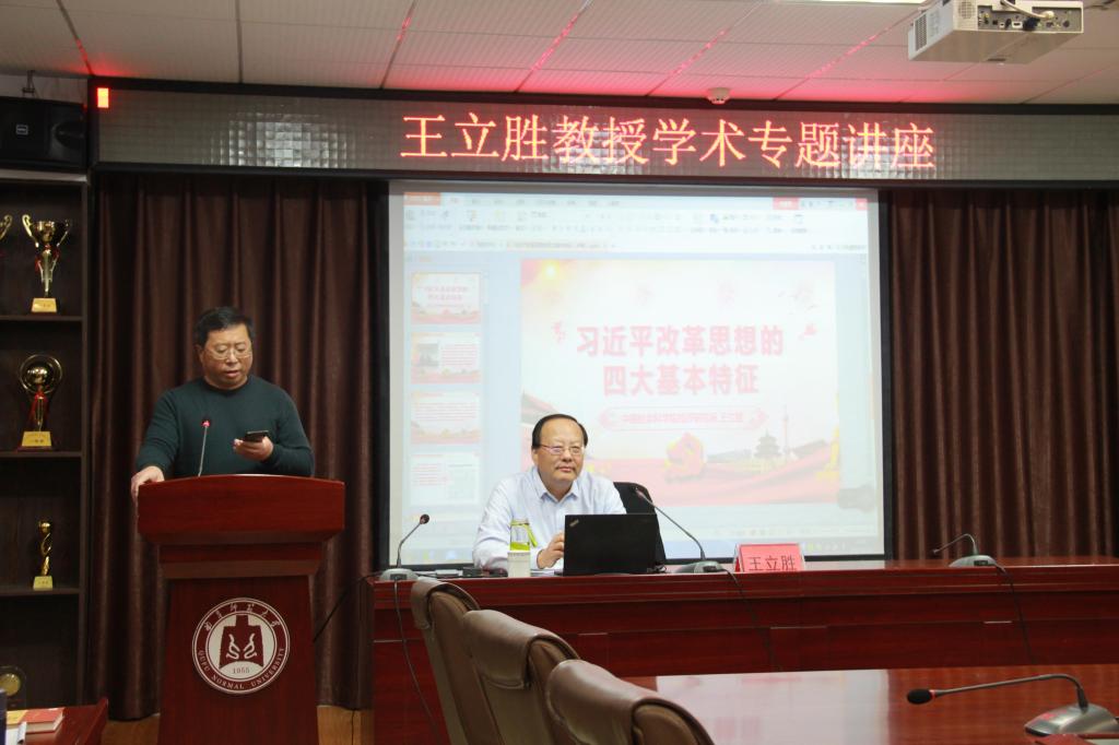 首先王维先院长向在场师生介绍王立胜教授的个人履历及学术成就。随后王立胜教授对习近平改革思想的四大特征进行解读,他从系统整体性的改革思想,顶层设计的改革思想,党、政府和市场三位一体的建设思想以及坚持社会主义的方向四个方面提出了自己独到的见解,激发了同学们的思考。报告中,王立胜教授对在场师生提出的相关问题进行详细的解答。