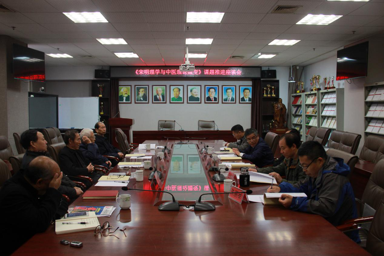 座谈会上,首先由姚春鹏教授就课题的选题思路、结构章节、申请过程及研究视野进行概述,分析了世界观的发展对医学形态的影响及中医理论演变发展的两个高峰问题;赵明山教授认为课题本身很有意义,因为关于医学本身的一些学说,要有实践的前进,理论的引领,以及材料来完善;刘长林教授表示这个研究方向具有创造性,中医学与中国哲学史是相互促进,密切相关的;随后李中华教授指出黄帝内经一直是中国哲学史上的一个经典,此课题能突破哲学史的障碍,同时又能突破医学理论的看法,具有很高的学术价值,并在论文的内容完善方面提出建议;徐仪明教授对课题表示赞赏,他认为宋明理学对于中医的几大影响还可以进一步深化,以提升国人对医学的认识,重新确立医学的信任,达到中医的特殊价值的延续发展。