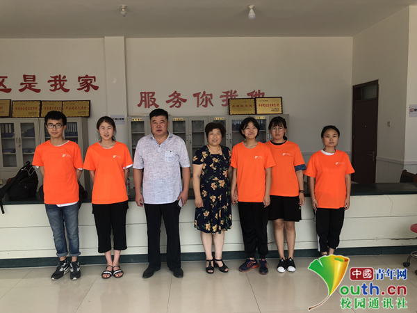 图为队员们和村委书记以及村妇女主任合影 中国青年网通讯员 刘佳璇 摄