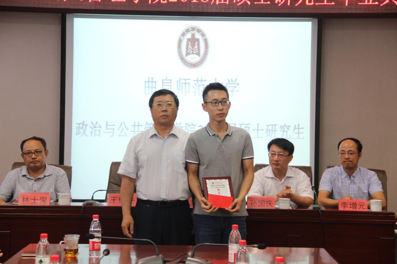 研究生导师代表张晓琼教授发表讲话。张教授鼓励大家相信努力一定会有收获,成功的回报与付出成正比,祝福学生在未来的征程上勇往直前,铸就人生的精彩与辉煌,要牢记老师们的教诲,做一名优秀的人。随后,毕业生代表高甲杰、2016级在校研究生刘志秀分别上台发言。王院长为获得“院长奖”的毕业研究生颁发奖项并合影留念。