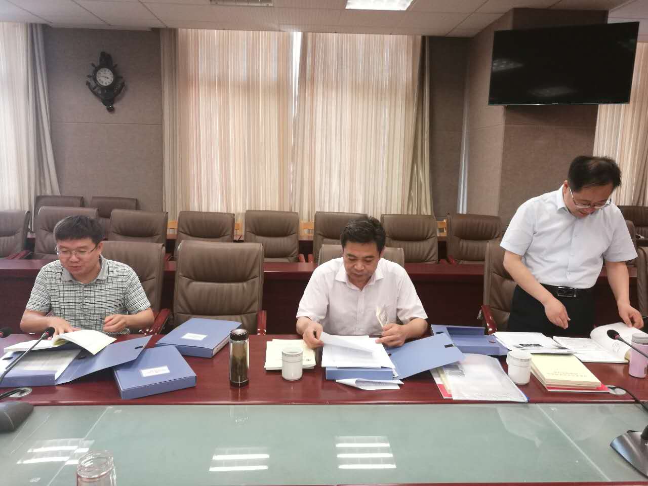 督导组成员历史文化学院党委书记尹明法、书法学院党委书记姜晓强、校党委组织部组织员杨兴防在听取汇报后,现场认真细致地翻阅查看了学部党委及各党支部推进“两学一做”学习教育常态化制度化的档案材料,对学部党委推进“两学一做”常态化制度化所做的工作以及鲜明特色给予充分肯定,对存在的问题和不足提出中肯的意见。张立兴表示,以此次督查为鞭策,继续发扬成绩,凸显特色,采取措施补齐短板,以扎实有效的党建工作促进学部各项事业的发展。