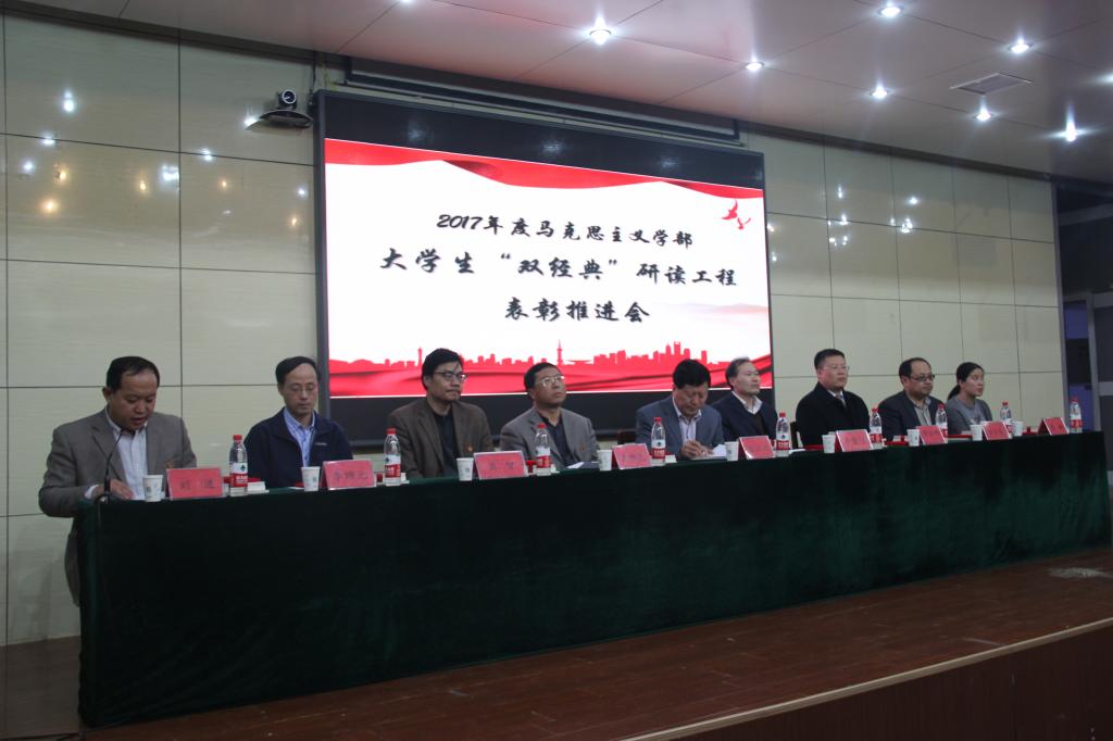4月13日,马克思主义学部2017年度大学生“双经典”研读工程表彰推进会在图书馆报告厅成功召开,大会由马克思主义学部党委副书记刘进主持,马克思主义学部党委书记张立兴、马克思主义学院院长李安增、51视频