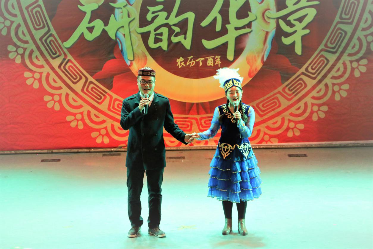 伴着《开门红》轻松欢快的音乐和演员优美的舞姿,晚会拉开了序幕。第一篇章“追忆往昔”,身着汉服的我部研究生,以恢弘大气的汉舞表演、论语诵读,彰显我校所传承的儒家悠久文化底蕴;第二篇章“风华政茂”,歌曲《可爱的一朵玫瑰花》让大家充分感受到了哈萨克族的独特民族魅力;搞笑舞蹈《咋了爸爸》充分展现了我部学子轻松诙谐的魅力;第三篇章“展望未来”,吉他弹唱《成都》让大家陶醉于民谣小调的清澈悠扬;小品《唐朝美人》以幽默风趣的台词、滑稽搞笑的动作让观众笑声不断。最终,晚会在歌曲《明天会更好》的温馨与感动中完美落幕。整台晚会精彩纷呈,美轮美奂,观众赞不绝口,掌声笑声此起彼伏,掀起一次又一次的高潮。