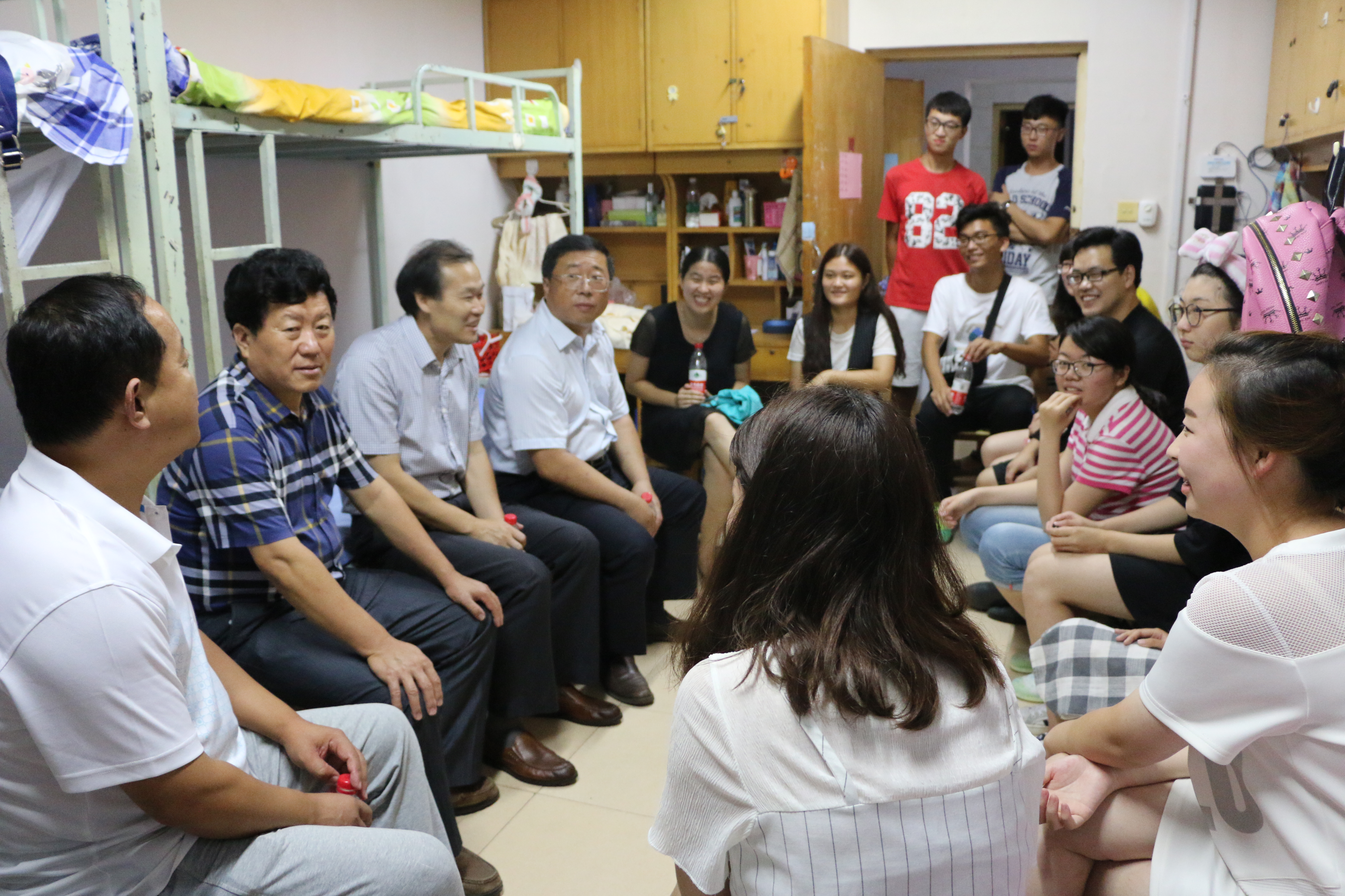 院长王维先,学部党委副书记刘进,团委书记、2016级辅导员陈敏,2014级辅导员韩凯辉视察走访2016级新生宿舍,与新生亲切交谈入学情况,送去温暖和关怀。