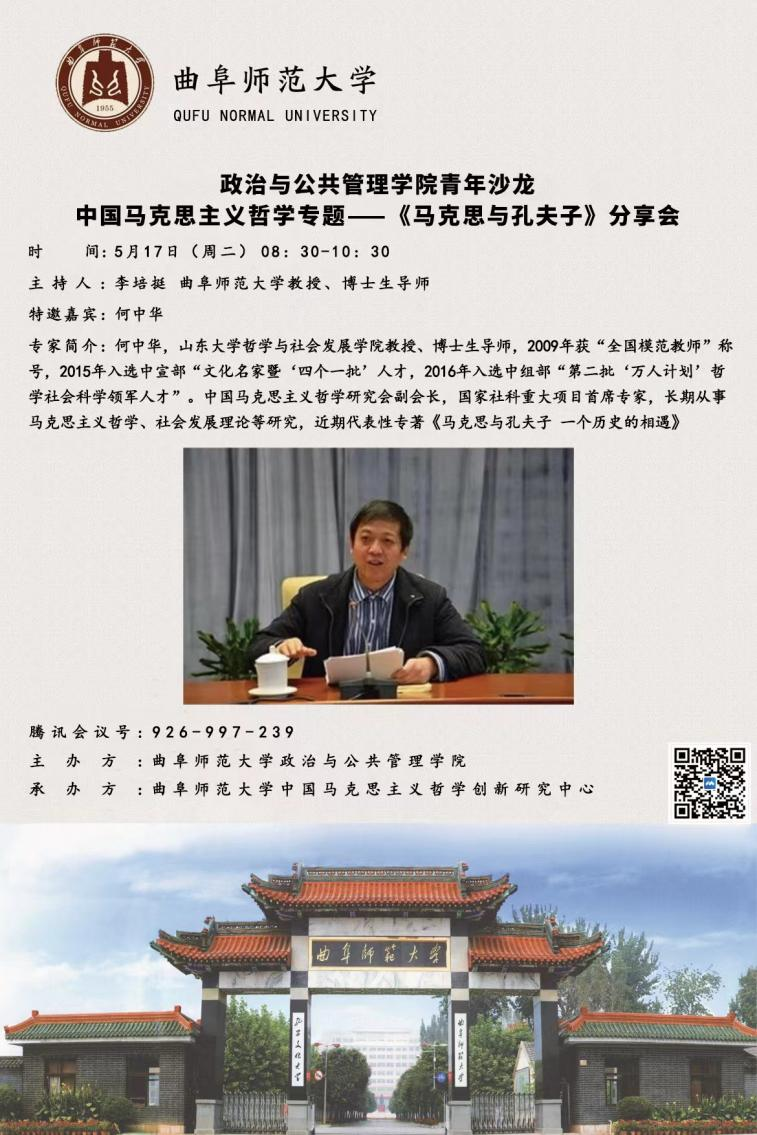 为进一步创新学术研讨模式激活青年师生学术兴趣51视频 引入青年沙龙学术研讨模式。在学院主要领导的大力支持下,于5月17日上午8:30-10:30线上召开了首期青年沙龙“中国马克思主义哲学专题——《马克思与孔夫子》学术分享会”。本次分享会特邀嘉宾是山东大学哲学与社会发展学院何中华教授,此次活动由学院学科办主任刘伟教授在线指导、孙功进老师点评、李培挺老师主持,李永刚、孟祥兴、刘祥乐、陈碧强、封顺帆、赵松等6位青年教师与院内外师友180人参加。
