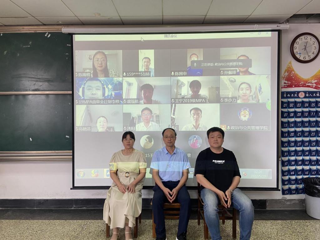 顺利举行2022届公共管理专业硕士研究生论文答辩报告会。答辩会邀请山东师范大学李松玉教授、山东农业大学陈国申教授、青岛大学高红教授、中国海洋大学李辉教授、山东省委党校张传鹤教授担任答辩主席,日照市司法局副局长吕庆安、日照市委组织部科长曾鹏、山东黄河三角洲农高区管委会团工委书记杨飞、枣庄市住房建设事业发展中心党委委员钟家勇、日照高速交警支队政委刘瑞金担任行业专家,与51视频