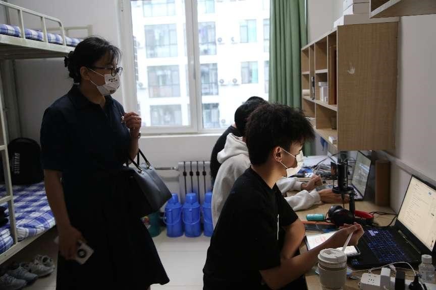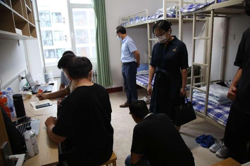 老师们每到一个宿舍便亲切地与新同学们交谈,详细询问新生的家庭情况和入学感受以及对即将开始的大学生活的期待。老师们表示,希望同学们尽快适应大学生活,制定目标,做好规划,开启新的篇章;同时提醒同学们要注意个人生命财产安全,安全用电,随手锁门,保管好个人财物;在疫情封校的情势下,要注意个人和寝室卫生。