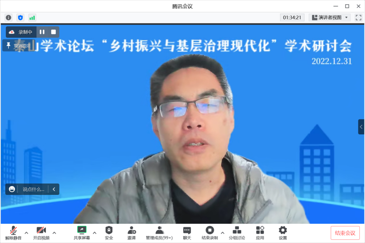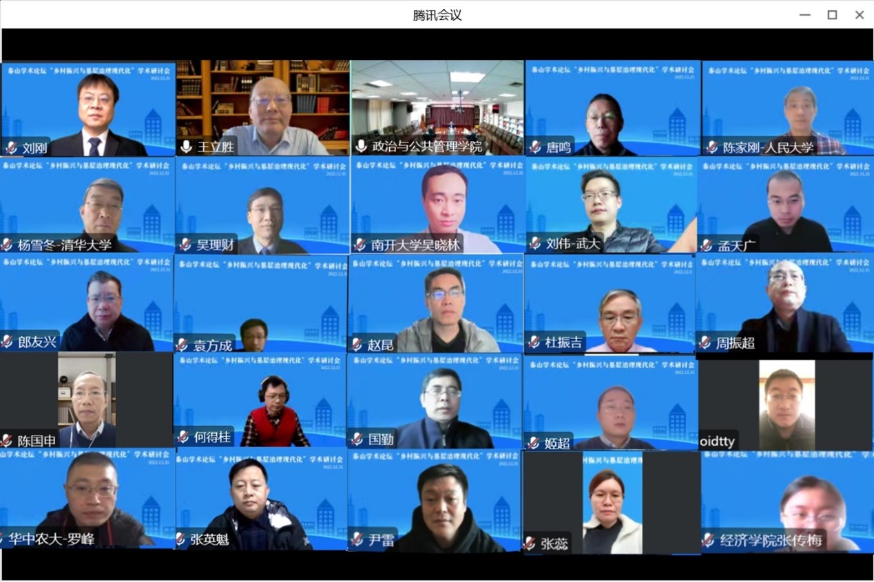 、乡村振兴与城乡基层治理研究中心承办,《齐鲁学刊》编辑部协办的“乡村振兴与基层治理现代化”泰山学术论坛于“腾讯会议”平台在线举行,来自中国社会科学院、清华大学、中国人民大学、南开大学、华中师范大学、武汉大学、浙江大学、安徽大学、西北农林科技大学以及51视频