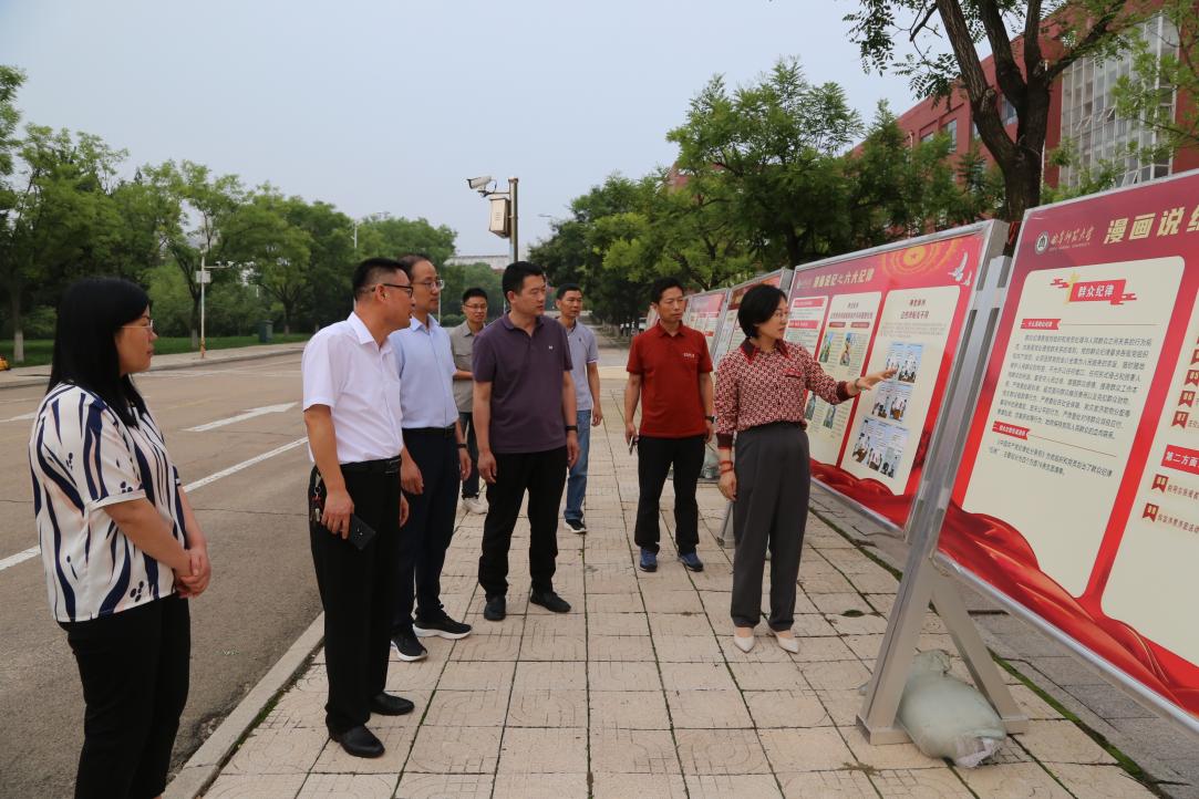 (通讯员:牟茜 摄影:宫晓云)为深入学习贯彻习近平总书记关于加强党的纪律教育的重要论述,推动党纪学习教育入脑入心走深走实,学院于7月11日组织领导班子成员、支部书记参观了学校“漫画说纪之六大纪律”主题展,共同学习了党的“六大纪律”基本内涵和具体要求。