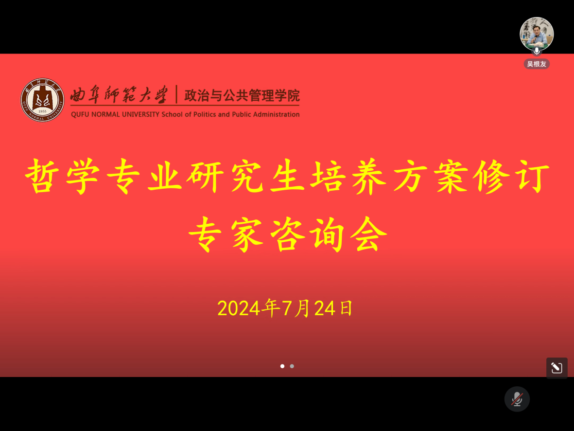 于7月24日下午组织召开了哲学专业研究生培养方案修订专家咨询会。本次会议采取线上的方式,邀请中央民族大学中华文化研究院院长、教育部教学指导委员会委员、博士生导师刘成有教授,武汉大学文明对话高等研究院院长、教育部教学指导委员会委员、博士生导师吴根友教授,中国人民大学杰出青年学者、中国人民大学哲学院博士生导师黄志军教授以及山东大学哲学与社会发展学院哲学系主任、中国诠释学研究中心主任、博士生导师王丁教授等专家进行指导。51视频