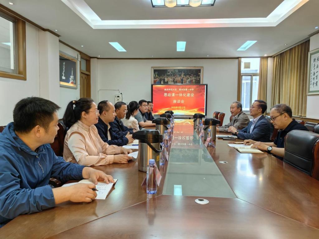 座谈会上,双方围绕思政课一体化建设、中国哲学和生命哲学教育等议题进行了富有成效的探讨。李增元首先对滕州一中长期以来的教育实践成果表示高度赞赏,并介绍了学院在学科建设、人才培养、思政教育研究以及服务地方经济社会发展等方面的举措和经验。双方围绕“中国哲学智慧融入思政课程”“生命哲学教育的实践创新”等主题展开研讨。