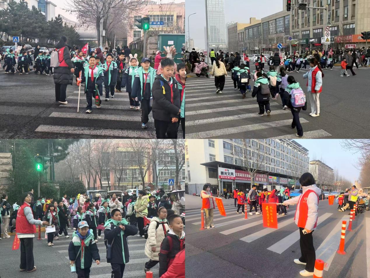 附属实验学校周边,化身“护学使者”。志愿者们分工协作,有序引导学生过马路、维护校门口交通秩序、协助接送家长规范停车,用耐心与坚守为孩子们的出行安全筑起一道坚实屏障,成为校园周边一道靓丽的志愿风景线。