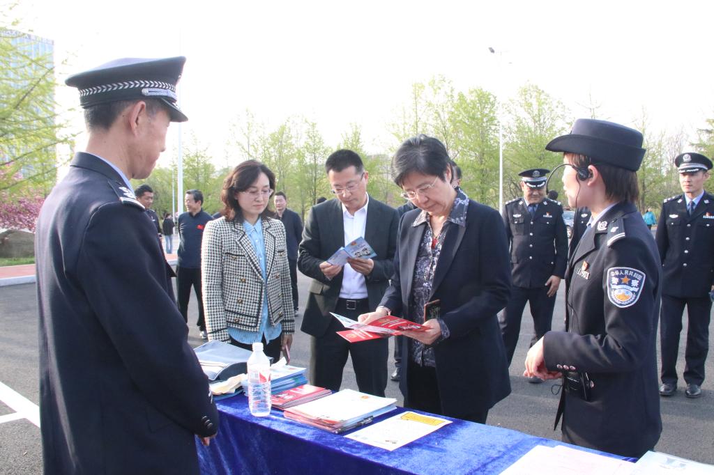 在警用装备展示区,各类武器警械装备整齐陈列,日照市公安局特警支队专业人员现场讲解,结合国防安全背景,细致讲解每一件装备的性能参数、用途功效,全方位展现我国国防科技实力与国防建设的丰硕成果,让师生们直观感受国家安全的坚实保障。