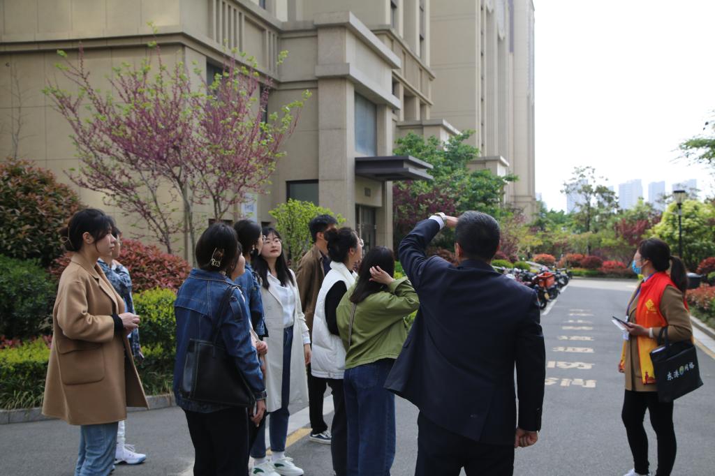 随后,同学们分为四组,由相应的网格员带领参观了凌云社区星河港湾网格、民政局小区网格、港烟小区网格和海曲世家网格,网格员向同学们展示了“红馨楼栋建设”“社区领办物业服务”“红色物业建设”等特色网格服务。同学们认真倾听网格员的讲解,并结合专业知识围绕社区管理同网格员进行交流,进一步了解凌云社区管理现状