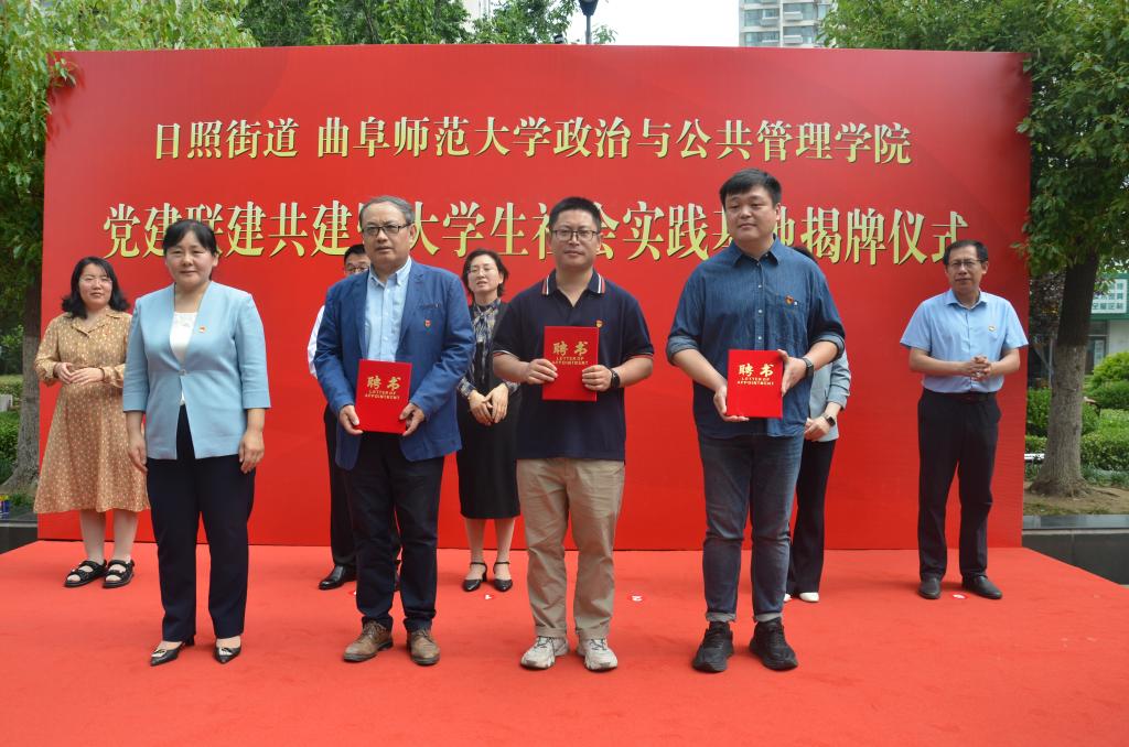 日照街道党工委书记王红为林士俊院长、林祥磊教授、尹雷教授颁发特聘讲师聘书。